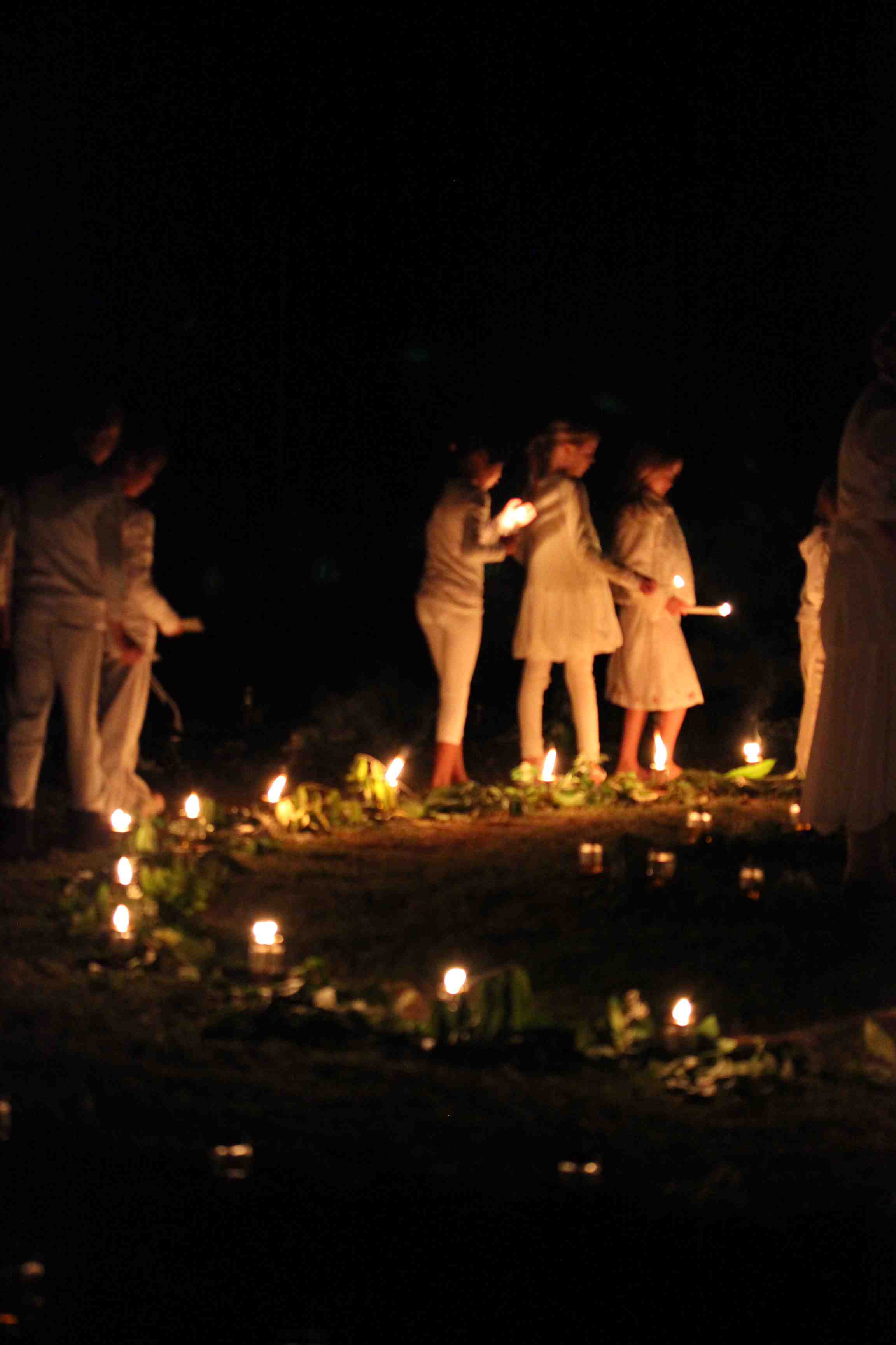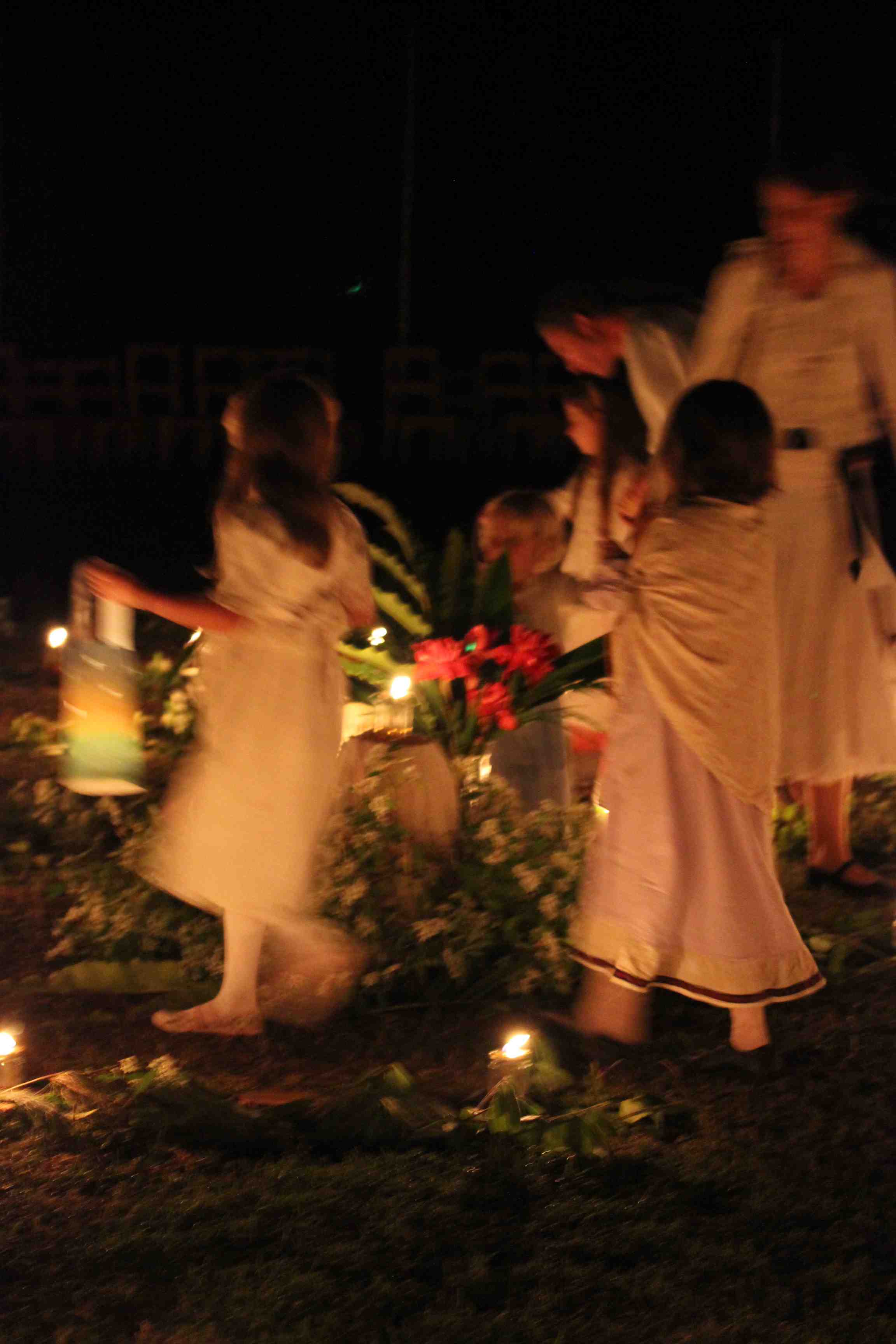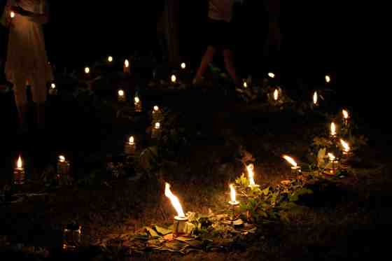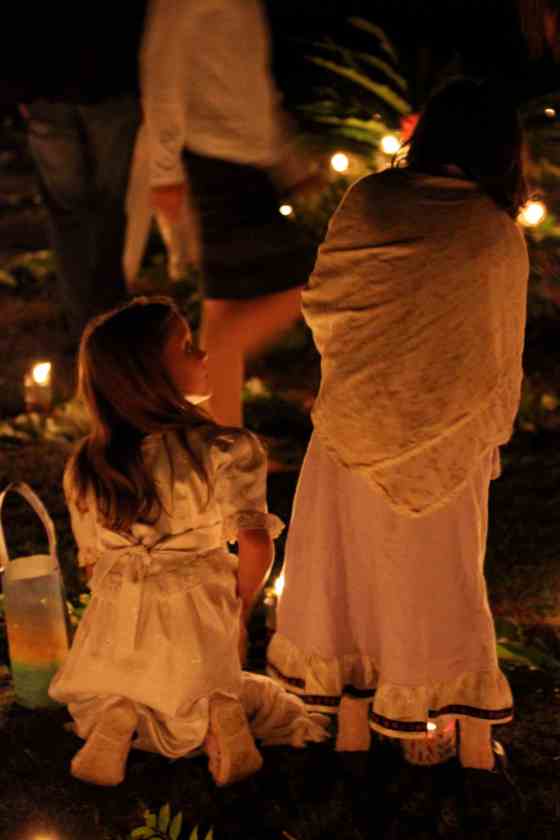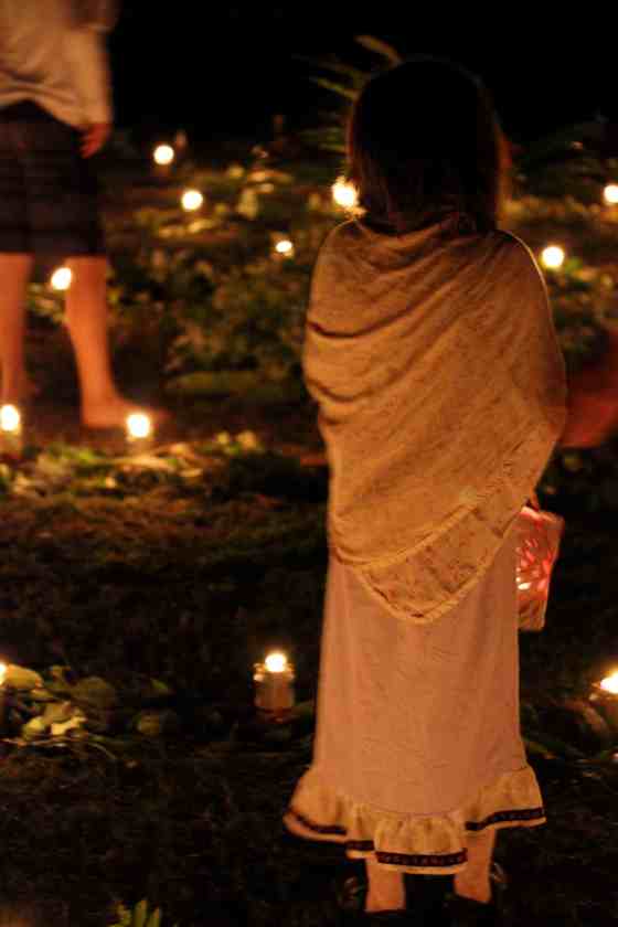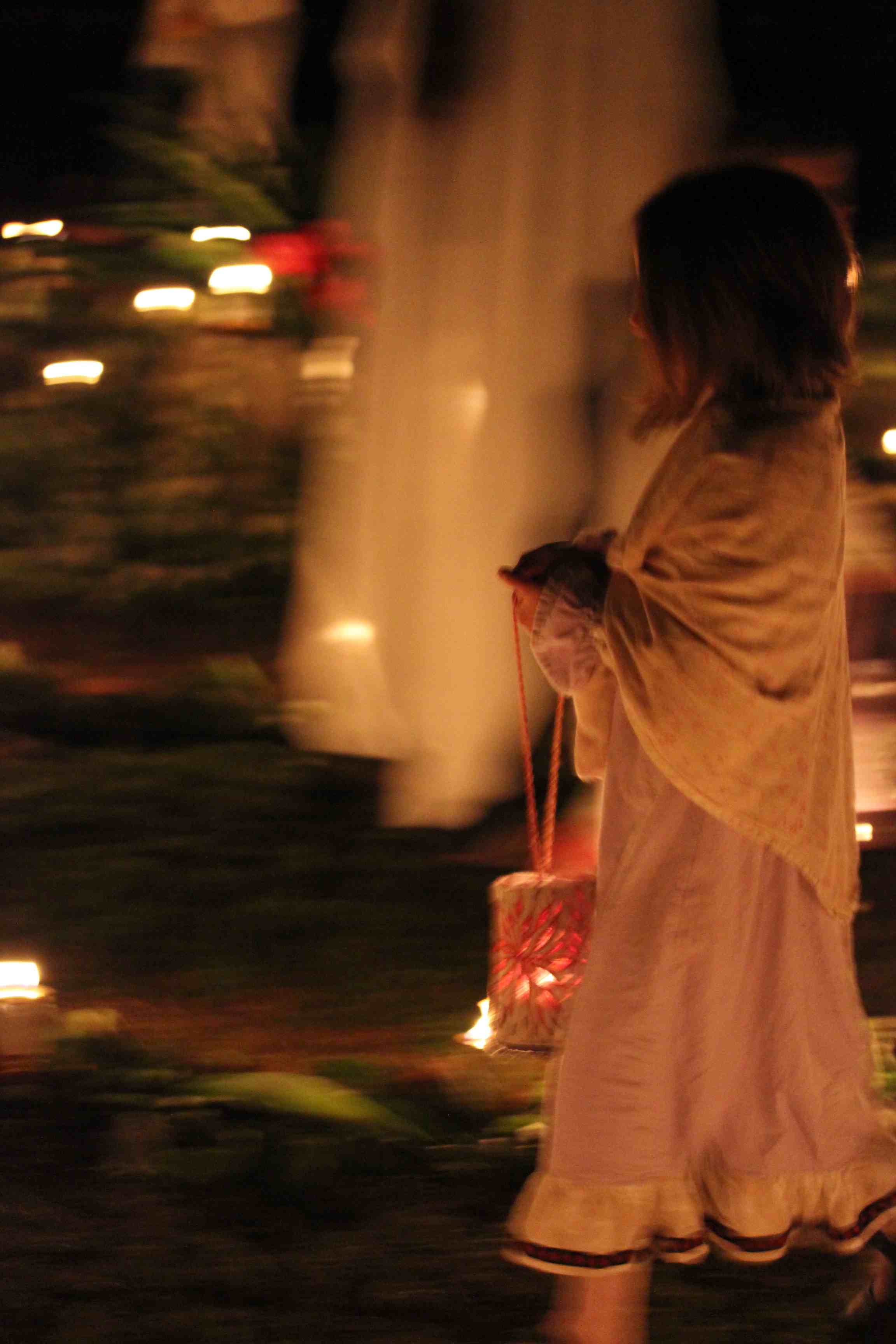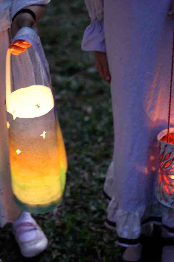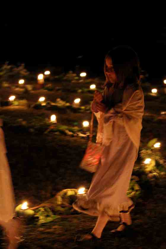 a parade of glowing gold and soft singing through the grounds