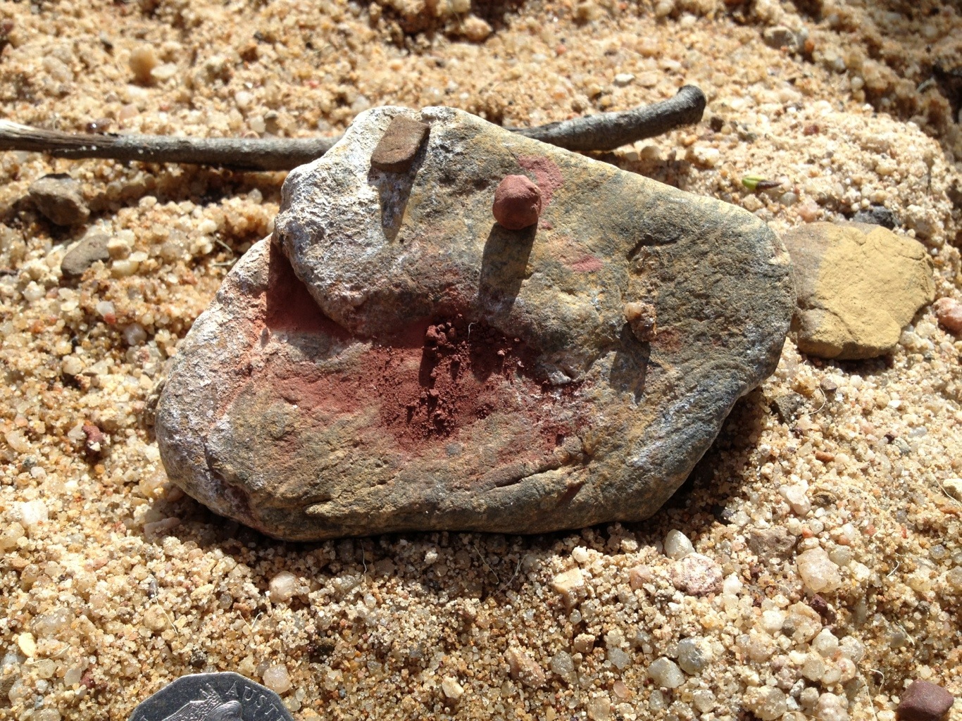 some silk, leaves, flowers, onion skin, a rusty bottle top, string and a rusty old camp oven (the iron reacts with the ingredients to enhance darker colors and give you a bit of extra magic, saying which, any big non food pot will do) with a stick which fits inside it…20120725-195818.jpg