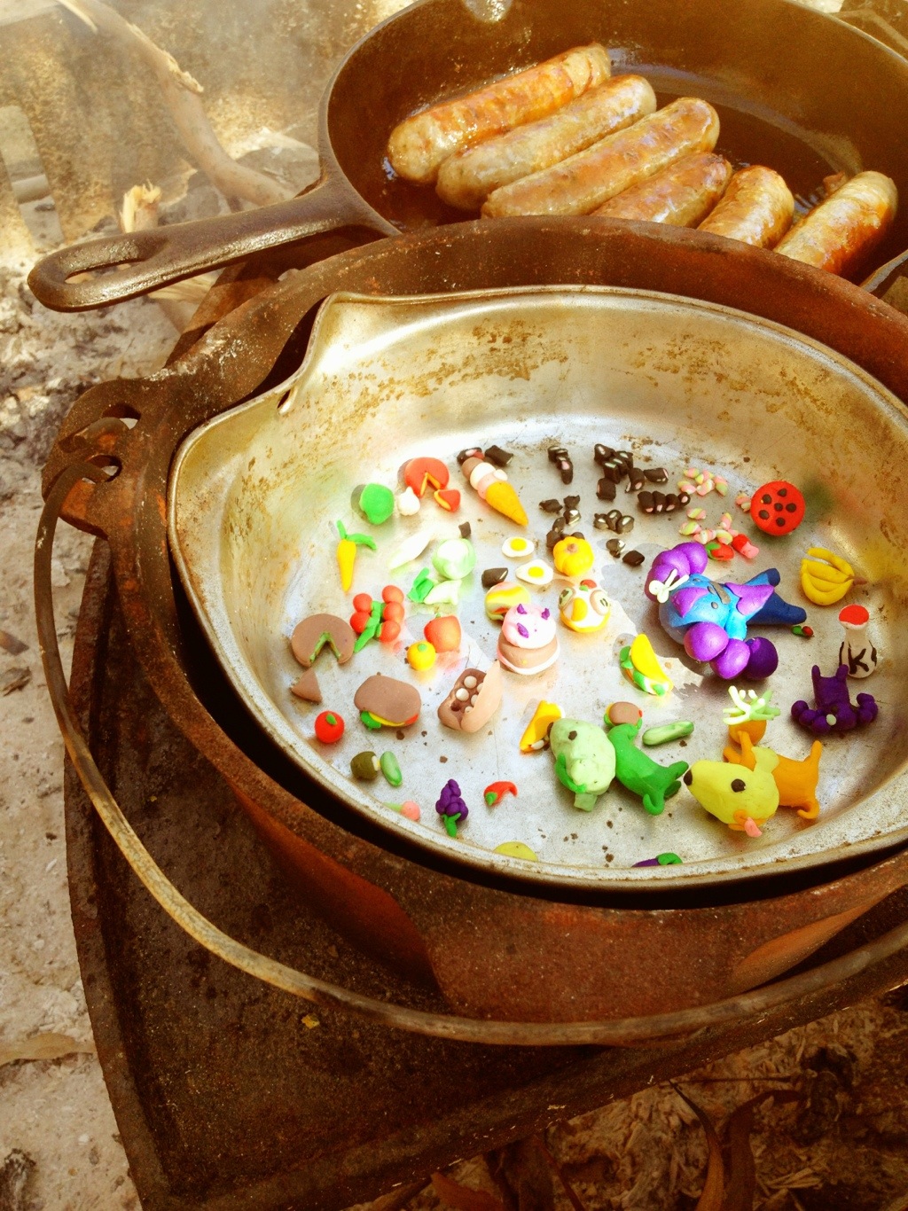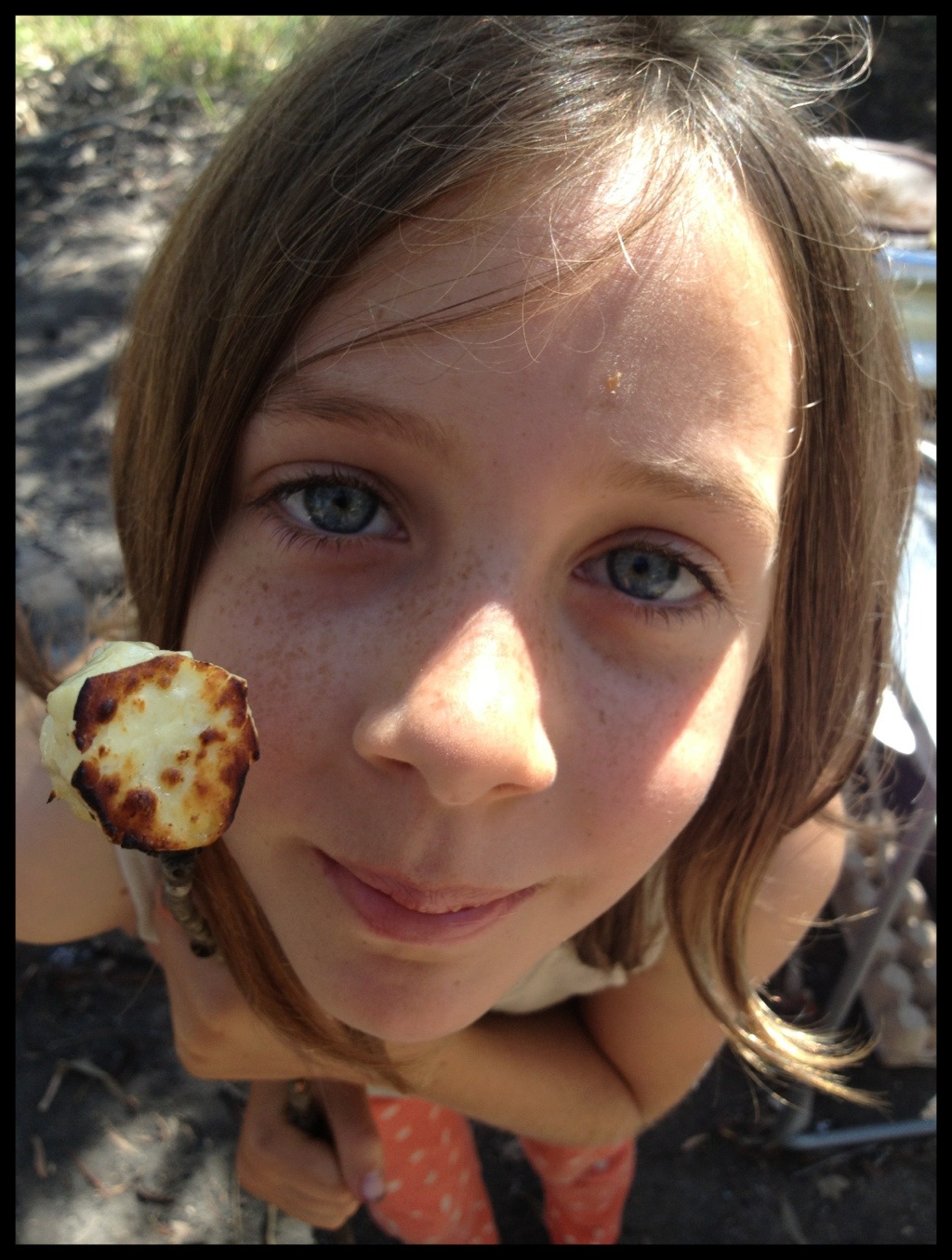Toasting haloumi instead of marshmallows on sticks in the coals