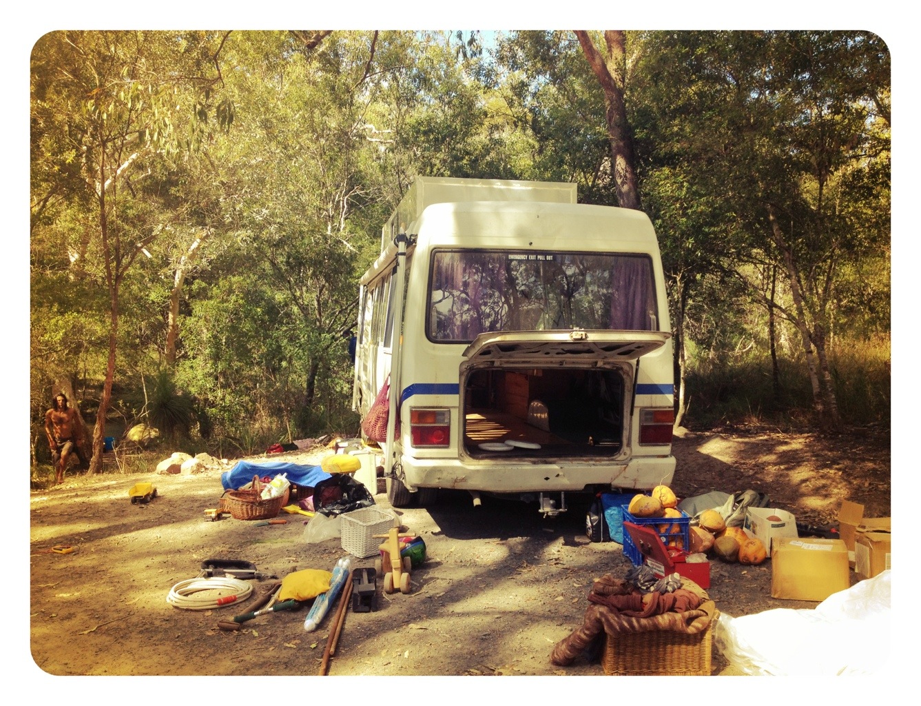 We had found mould in the bus since our wet daintree week so a cleaning out task was set.