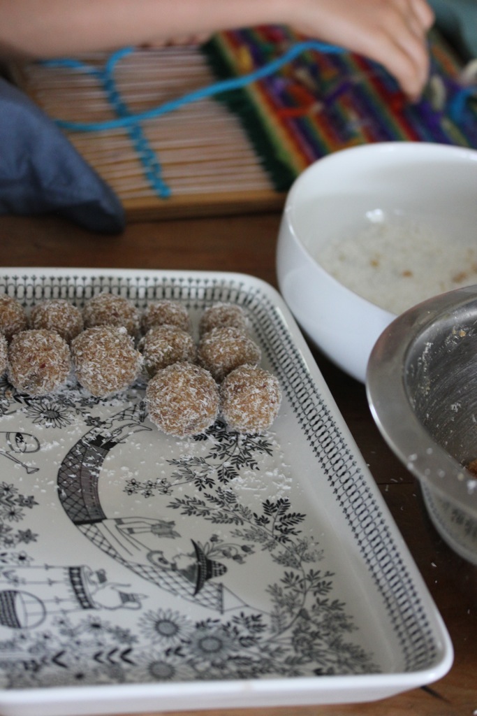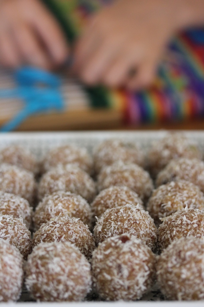 delicious and easy to make, bliss balls in all their variations are a yummy snack, and have some nutrition in the coconut and tahini especially which is always a bonus when making family treats! and no added sugar…