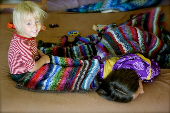 Lily made a bunch of little sacks to package little craft items in for the school stall.