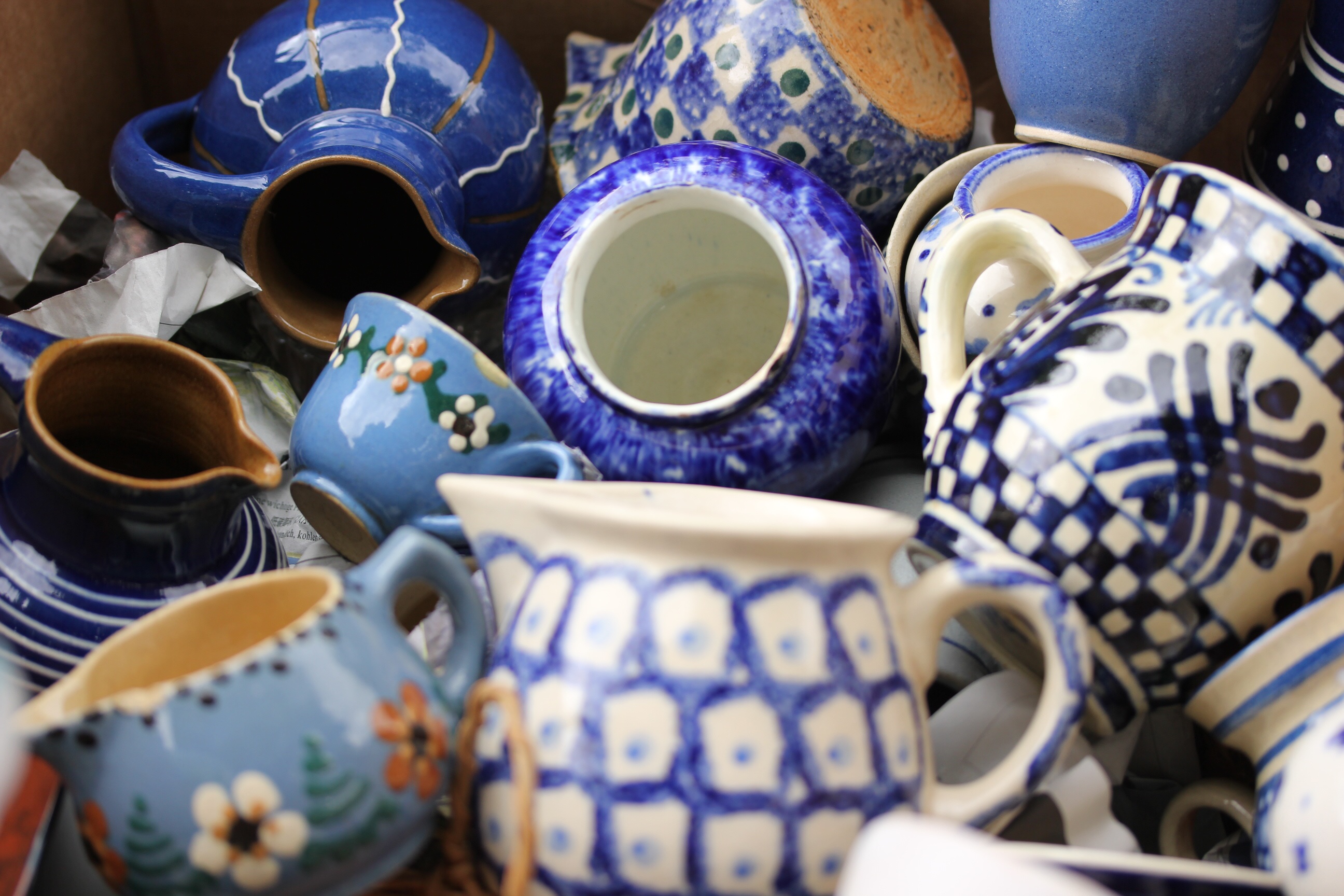 I found some fabulous cotton vintage dresses and a button accordian, Polish ceramic ware and olive wood bread boards.