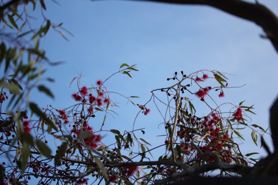 Looking: at the tree line against the incredible blue sky, at what grows when you give
