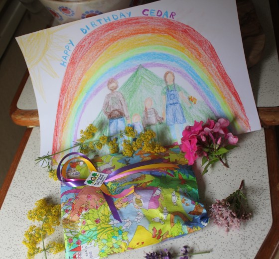 There are many carving and sculptures along the lakeside path. Cedar played his own little birthday Sansula and enchanted us.