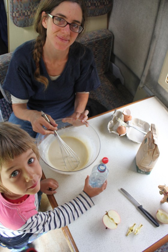 The traditional pancake breakfast substitutes for a cake when we are camping. Lush toppings, fresh berries, cream, yoghurt and maple syrup. I eat renegade savoury pancakes first, gruyere cheese and pesto.