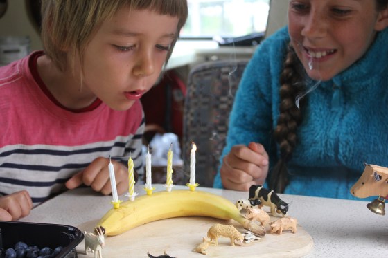 So happy to get to the playground at the bottom! We walked back to camp at 9 pm via the restaurant for slices of cake and warm milks. I took candles and we had a mini birthday celebration there. A super special family day! Hooray Cedar!