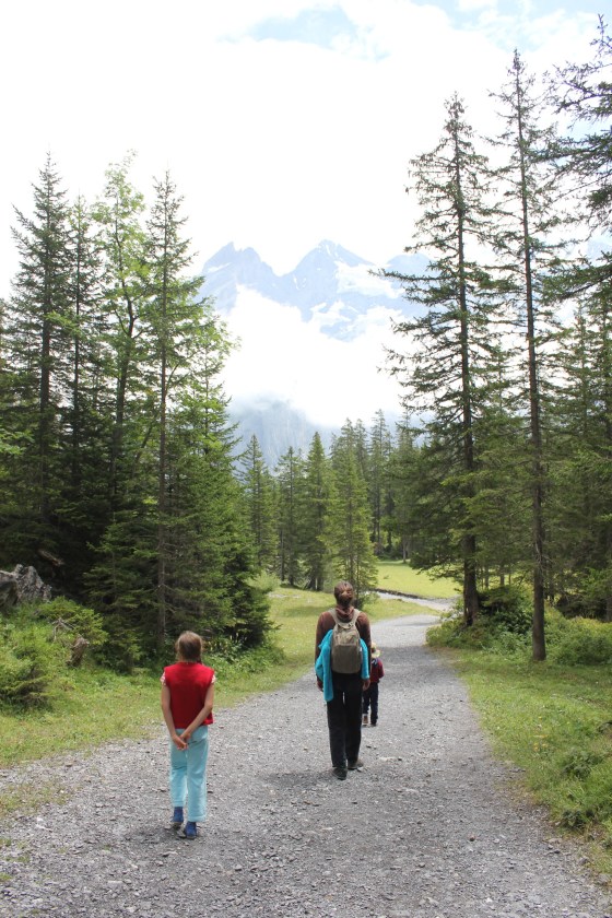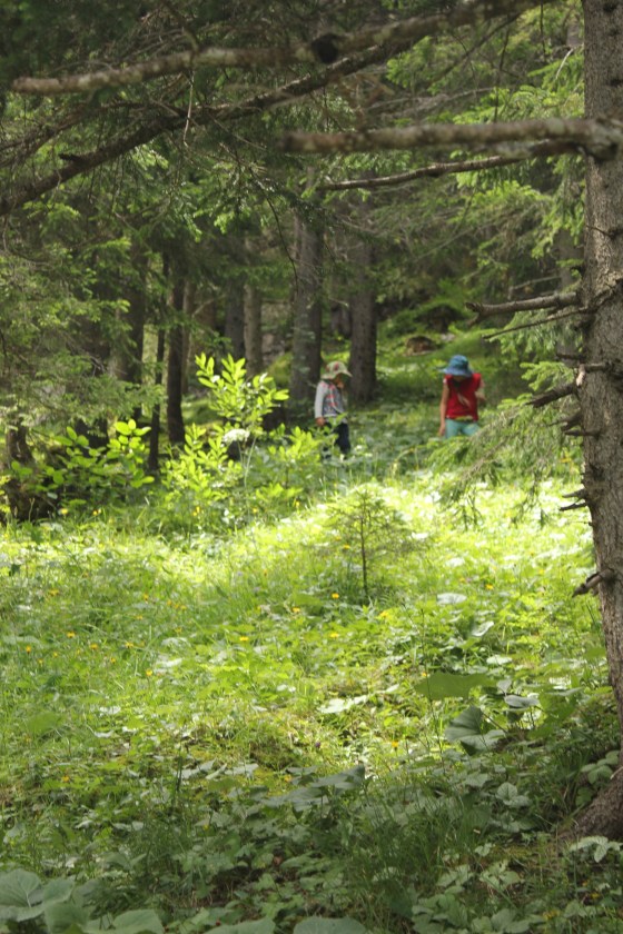 I am enchanted by the alpine flowers and the children hunt out wild strawberries and raspberries. It keeps them busy and happy for an hour and I can soak up the incredible environment at 1500 or so metres above sea level. We are blessed with mostly sunshine and wonderful cloud pictures being sucked on by the peaks.