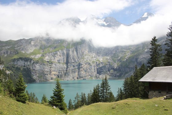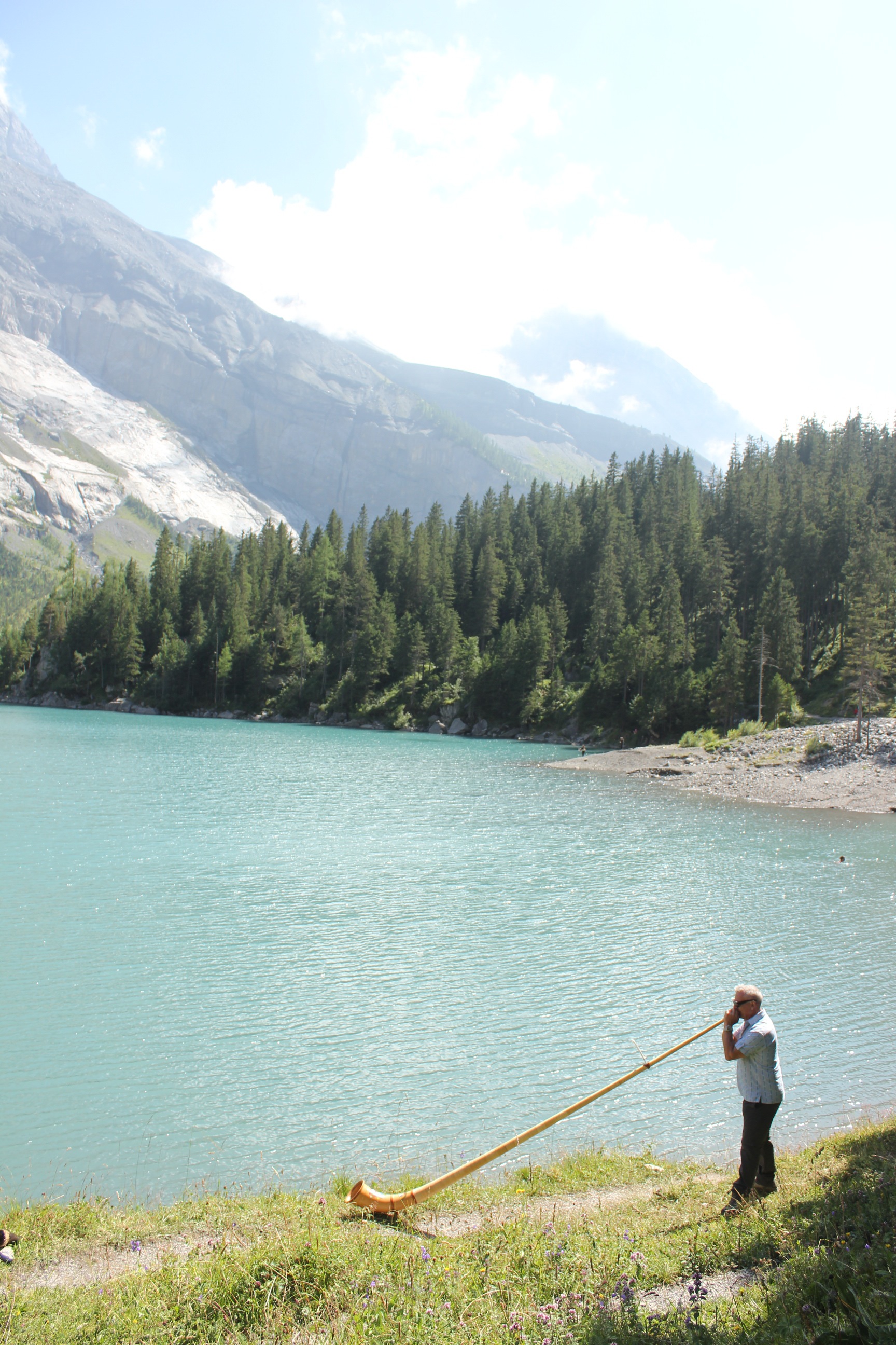 Postcard moments. Oeschinersee. The lake is turquoise. Crispy clear and cold, it is fed by the snow melt and glaciers.