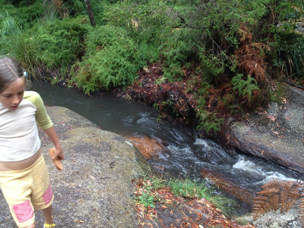 Discussing how and where and what and why was a rich experience. The children chose their rock beds and imagined where the fire was and how we would use the cave and how many people would share it and so on. I realised how little i know of the nomadic tribal culture in Australia, how disconnected i feel at times from the cultural history of this land I was born in. Sadness arising for what is lost now. the questions i’ll never know answers to.  noticing the discomfort i can experience when I am in company of people of culture because i don’t have many reference points. and ultimately I’m a white fella and there is a massive burden of racism and tragedy between us. at other times it just naturally is and I’m connecting with ease and humour. often the children break the ice and connecting through play is a gift.IMG_0090