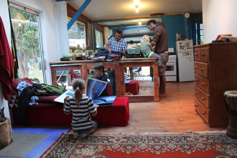 Little Peninsula, bean tortillas, the benches are all rotted out and wet so we all perch on the table, it’s really messy and the kids have their feet on the table and love it…