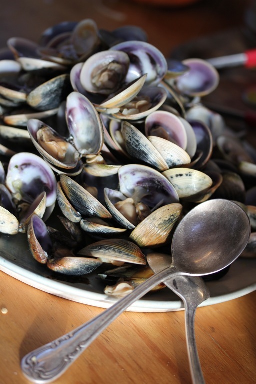 Cockle Creek, cockles found with our toes and served with risotto, tomato mussels and watching Jesse slurp palm sized oysters