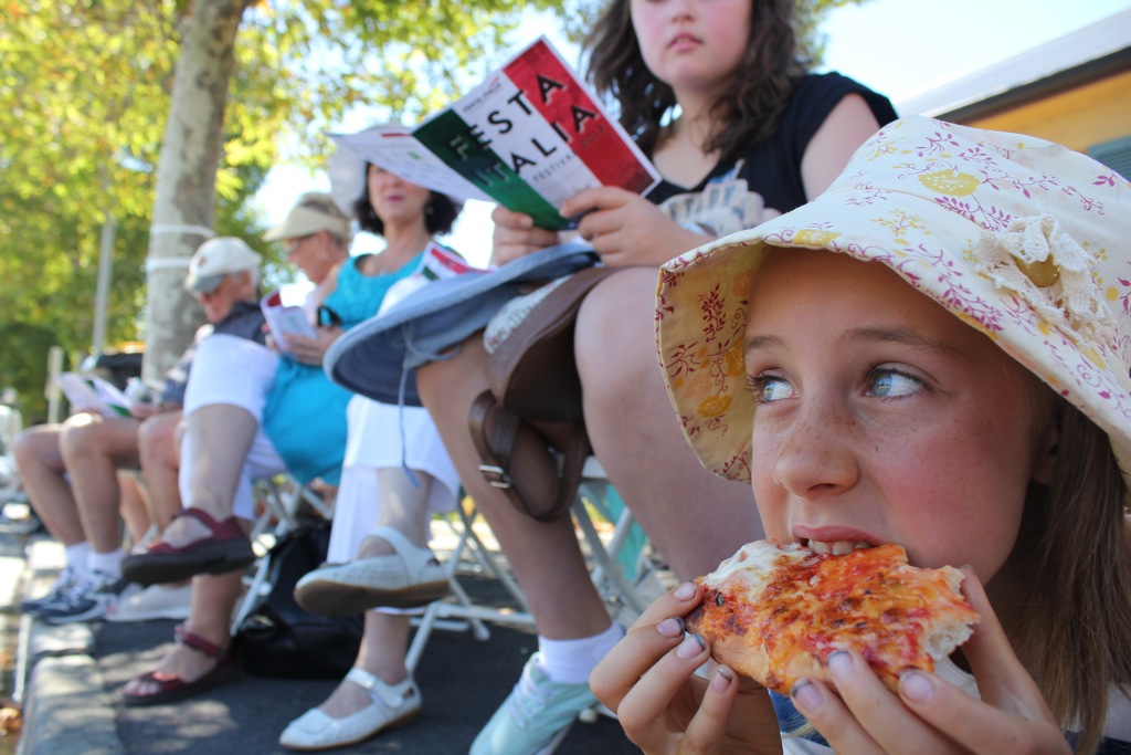 Hobart Italian Street fiesta, huddled in the shade with fresh pizza and the italian chatter over our heads