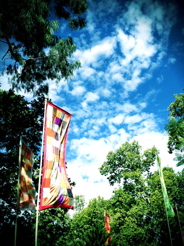oh that clear blue Adelaide sky! sharp blue in the heat. Beloved puffs of breeze stir the silken flags above my weary eyes…