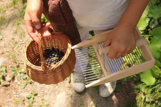 this handy little rake catches the blueberries for you, but be careful you don’t strip the leaves off also.