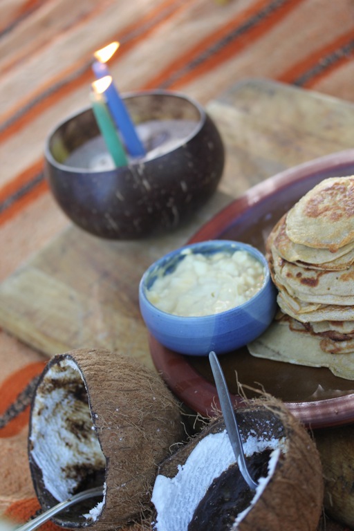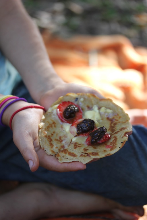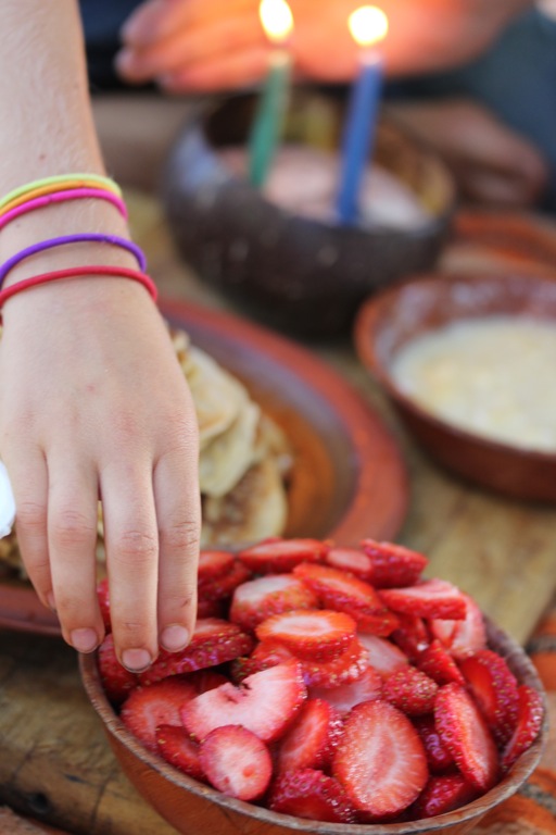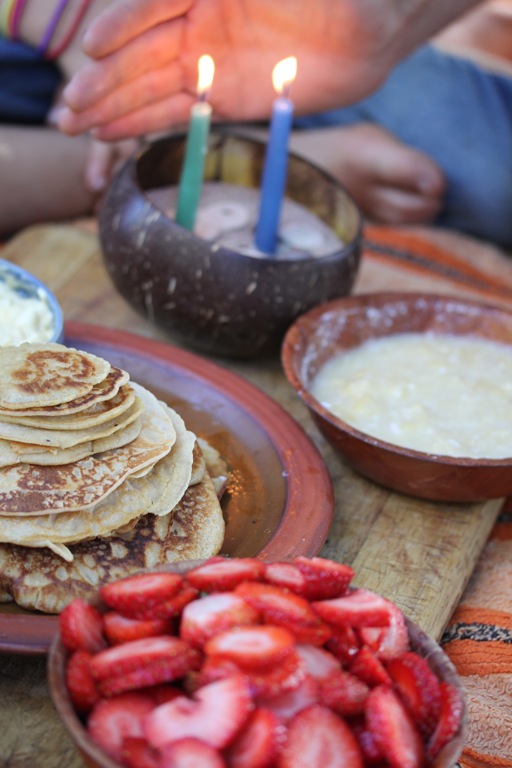notice the jar of rapadura sugar? this has lately replaced the maple syrup bottle while stocks are out. it’s been a good experiment to see that Lily can now self moderate a teaspoon sprinkle of sugar on her pancakes. Yay! it has paid off, all that strict mama monitoring of sugar … now i can relax abit about it and know she knows i know she knows; how to self regulate sugar intake and feel good in her body! luckily Cedar copies her…