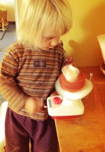 intended for the 3rd birthday but came in a day late as i had to make and unravel three times to get the sizing right. yep third time lucky. {next time just follow the pattern Rosi} i knit quite loosely and my things stretch quickly too big so i try to compensate. this knit taught me how to carry over colors when making patterns, fun!
